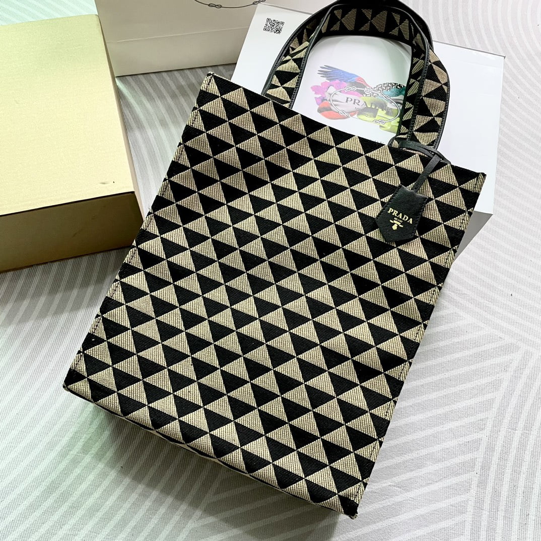 Home BAGS PRADA 𝐏𝐫𝐚𝐝𝐚 embroidered fabric tote bag 1BA360 SXK8865 size: 35.5*41*11cm