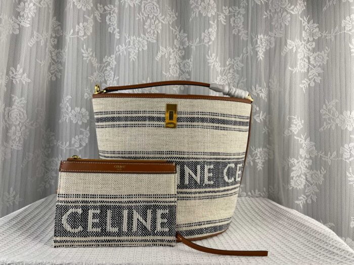 CELINE Fabric cow leather mini bucket bag Size:16*18*16cm $199.00 Original price was: $199.00.$110.00Current price is: $110.00.