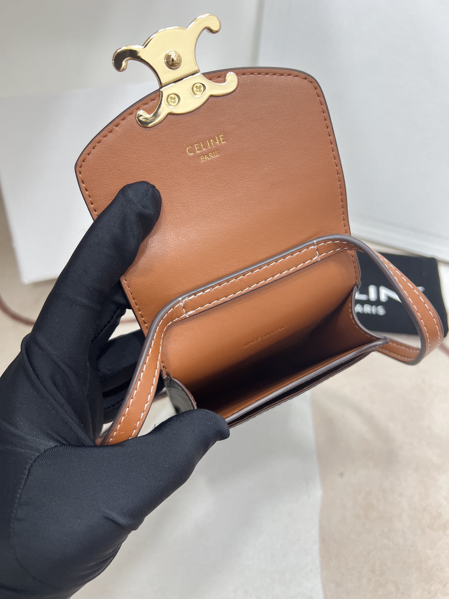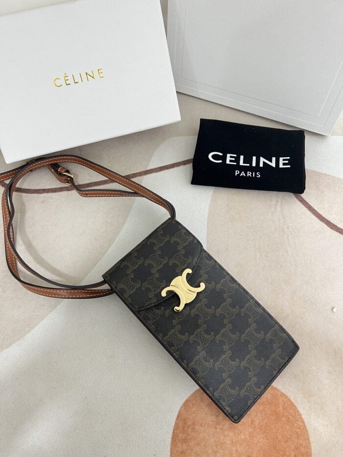 CELINE Mobile phone bag with leather strap Size: 10*2*19cm