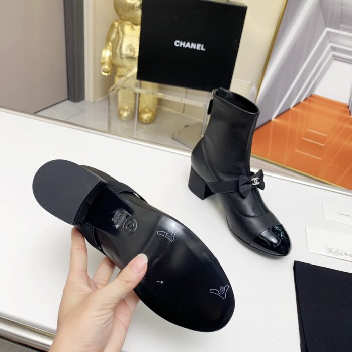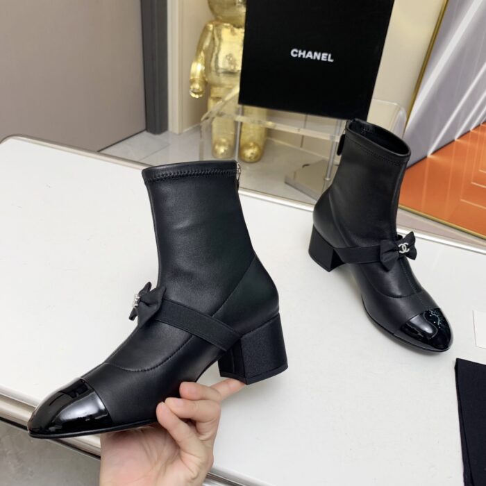 Chanel elastic sheepskin bow thick high heel cool boots, latest slim high heel boots ~ socks boots ~