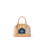 The Alma BB handbag is part of the Monopaname capsule, Nicolas Ghesquière’s ode to the City of Light. The Alma’s distinctive Art Deco shape is fashioned from beige Monogram canvas, featuring “Louis Vuitton Paris” in the style of the street signs of Paris. The ocher-and-white stripe that bisects the bag is a historic House design element.