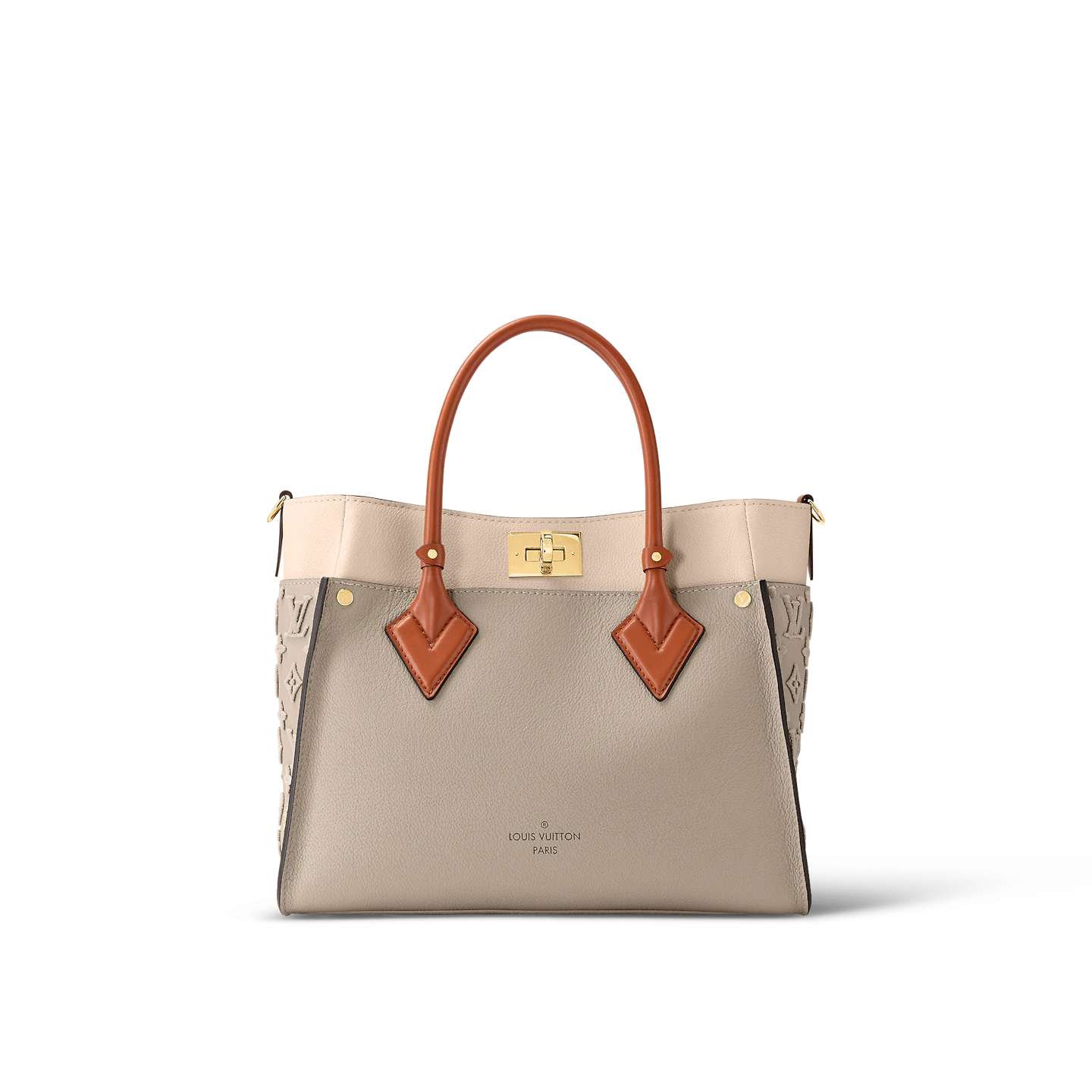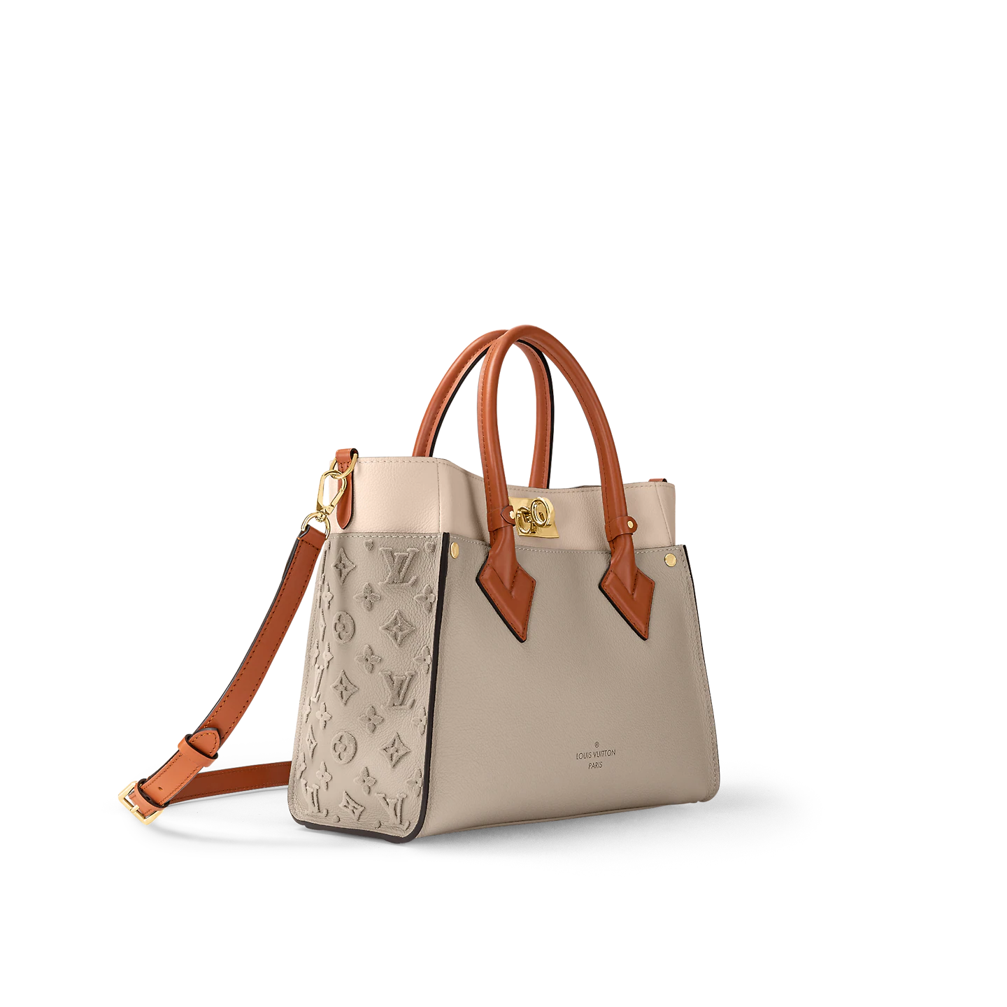 The perfect everyday bag. the On My Side MM tote is made from small-grained calf leather and discreetly signed with side panels in Nappa Softy leather featuring Monogram tufting. Eminently practical. its A4 size and square volume mean there’s room to pack all essentials. It has two leather handles for hand carry and a strap for cross-body wear.