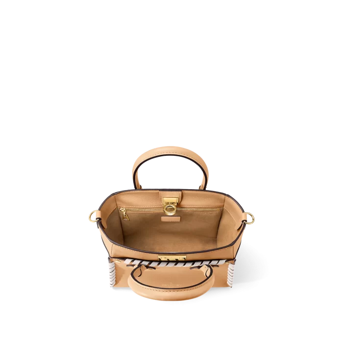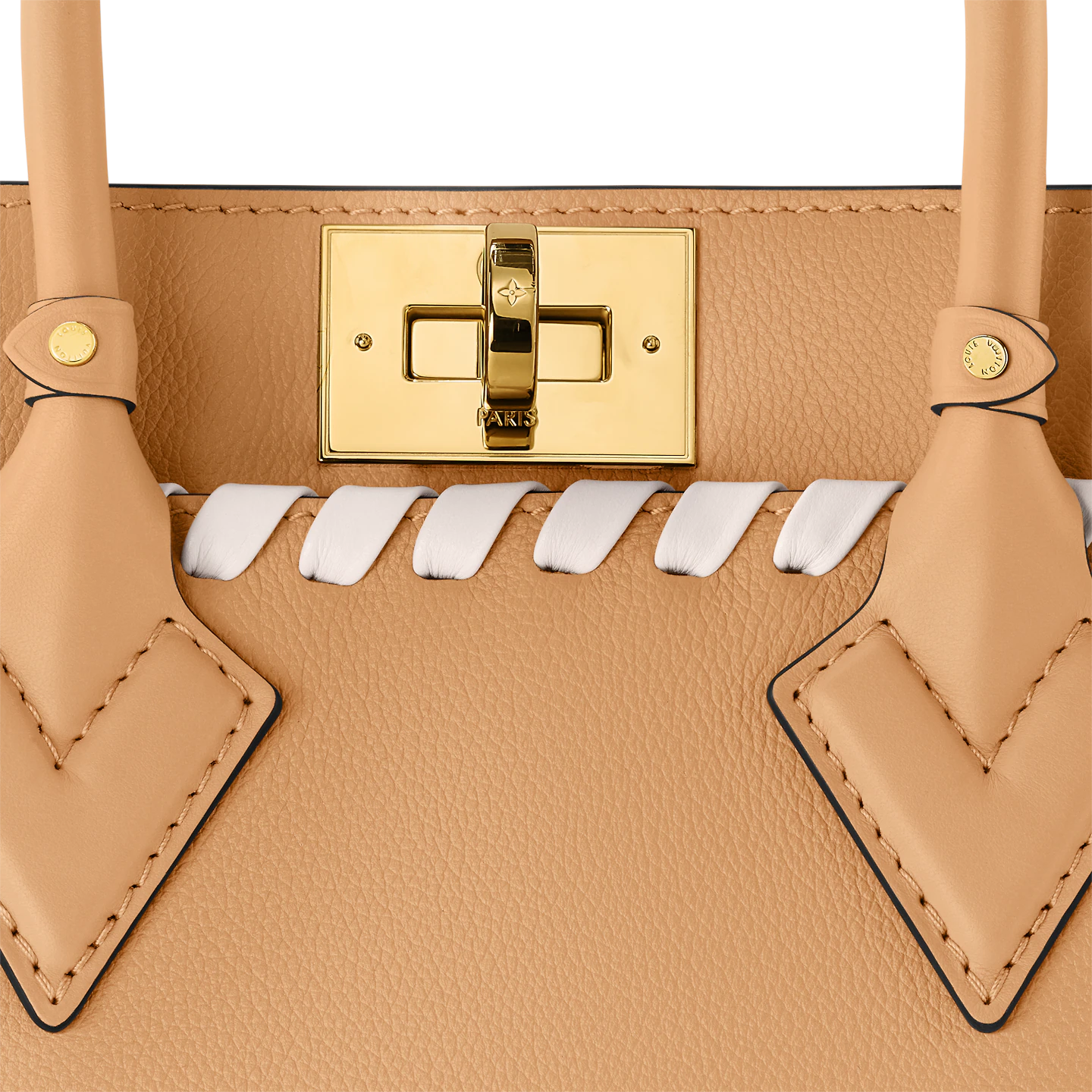 Nicolas Ghesquière constructs the iconic Alma BB handbag in padded lambskin, embellished with a shaded effect. Applied by hand, the toasted aspect brings a modern elegance to the bag’s Art Deco-inspired shape. Two top handles and a removable strap enable a variety of carries. A golden padlock and leather key bell complete the design.