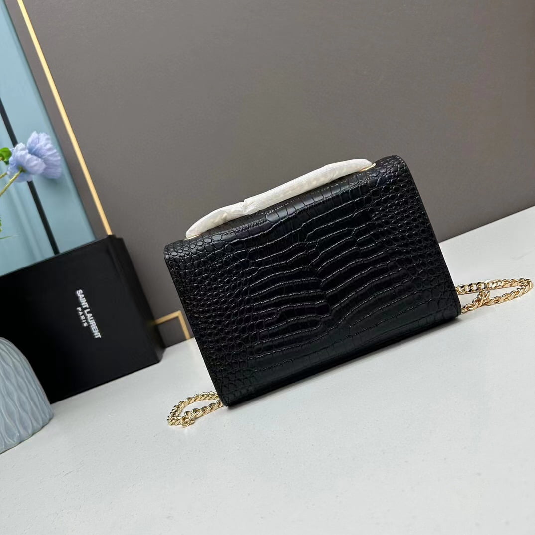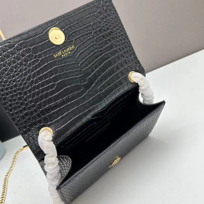 YSL Kat crocodile chain strap shoulder bag with gold hardware 7219 black size: 20*14*5cm/24*15*6cm